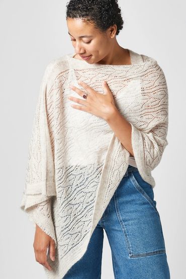 Our Tuscan Wedding Poncho is a cozy fashion statement, and with its lacy leafy design, a wedding favorite. Perfect for any spring, summer, fall or holiday occasion, the 50% mohair / 50% poly weave ensures it's one of the softest, warmest and most versatile pieces in your closet. The Tuscan Wedding Poncho moves from gallery to garden to gal's-night-out. Day or evening, it provides a layer of warmth, softness and Italian style.